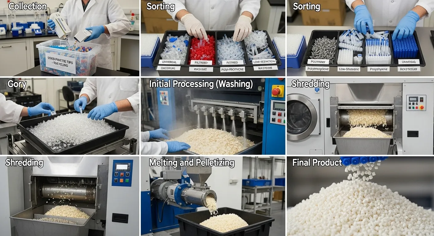 Mechanical recycling—the process of shredding, melting, and pelletizing plastic—is the most common method today. The goal for high-value materials like lab plastics is “closed-loop recycling,” where used pipette tips could be re-molded into new, non-sterile lab products. Chemical recycling, an emerging field, uses processes to break plastics back down into their original chemical building blocks, allowing them to be reformed into virgin-quality recycled plastics.