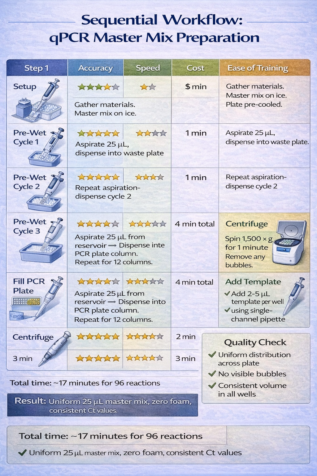 - Select one critical application (e.g., qPCR master mix prep)