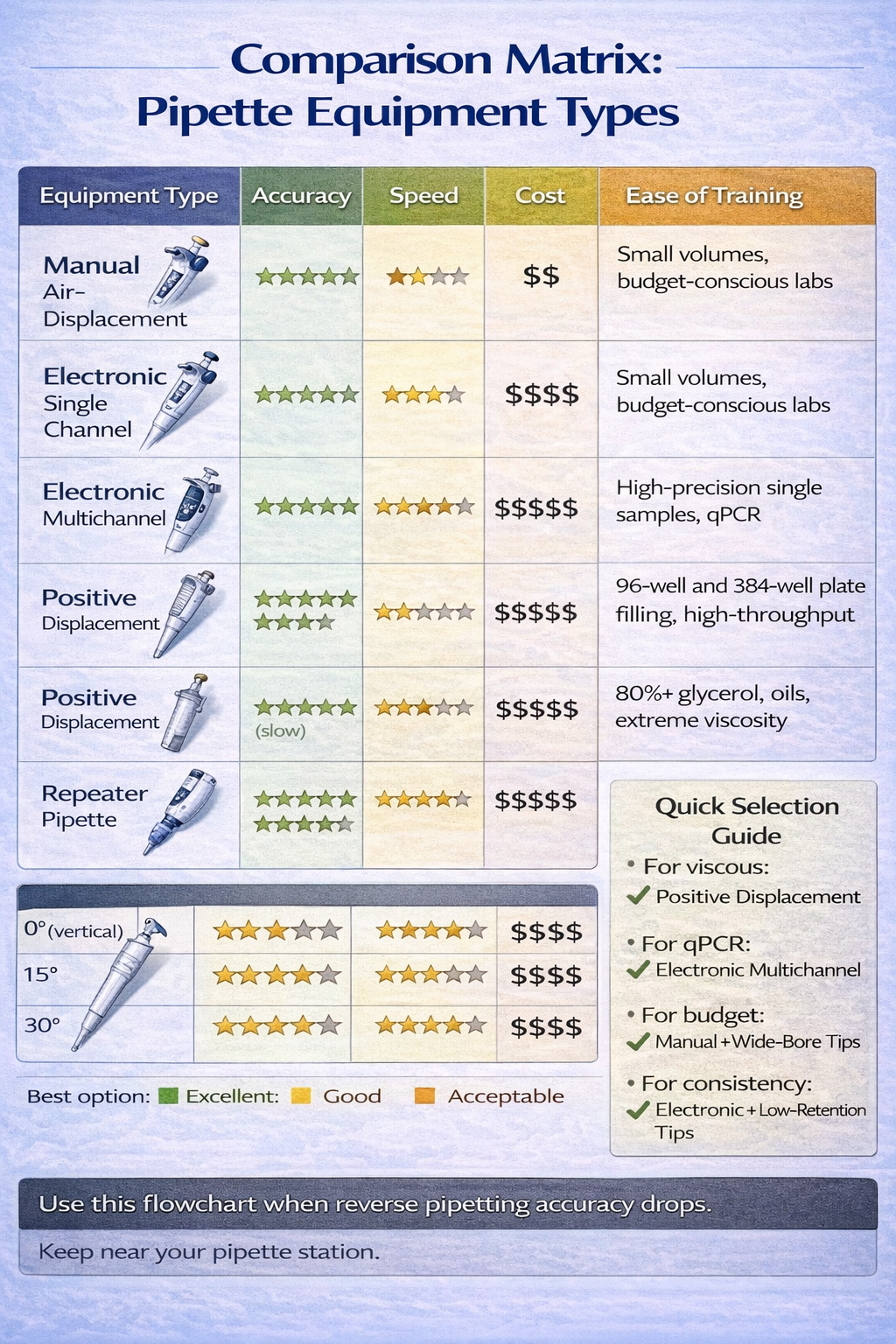 - Audit current pipetting methods and identify applications prone to accuracy issues