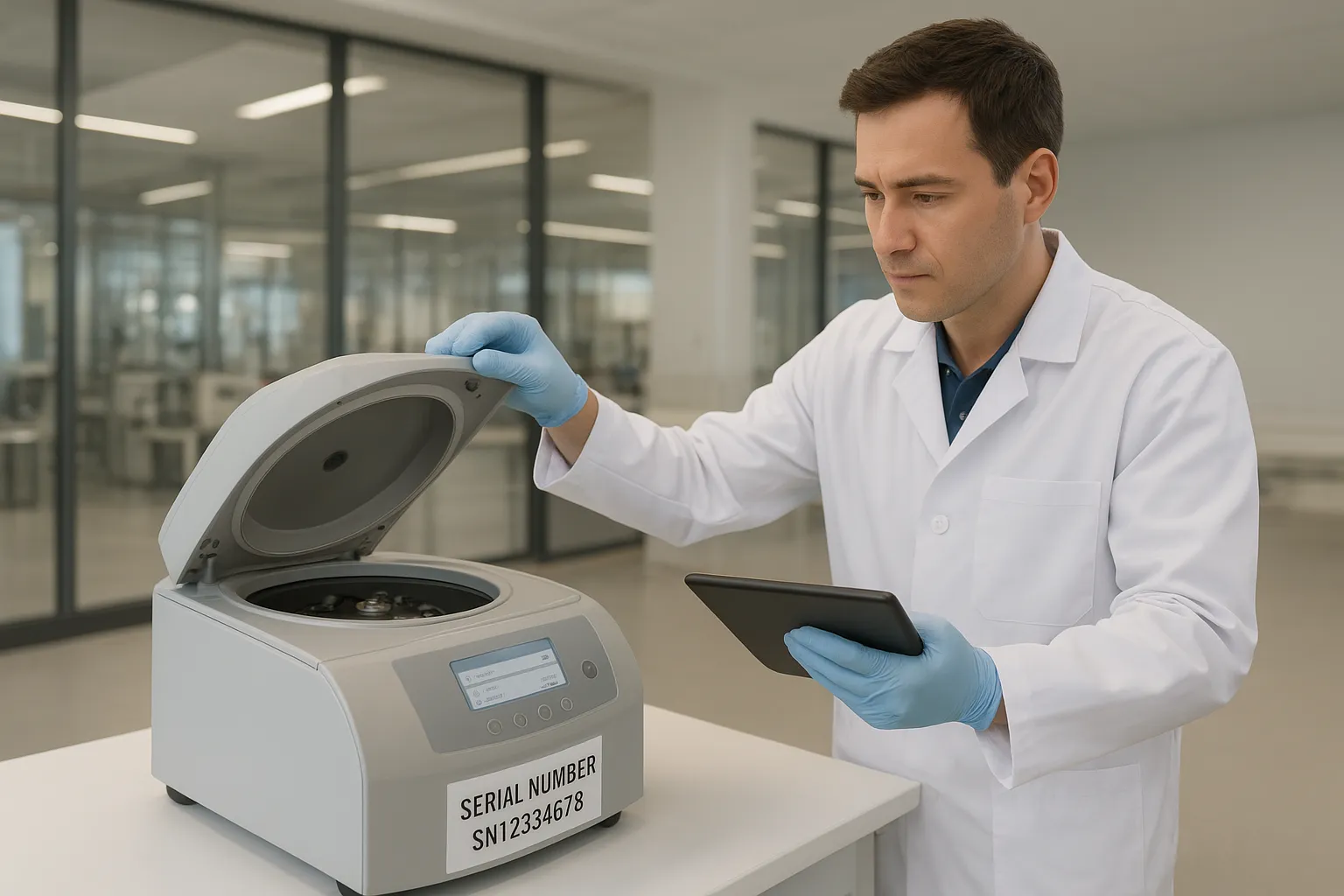 Inspecting a refurbished centrifuge at a certified used lab equipment dealer Pipettes